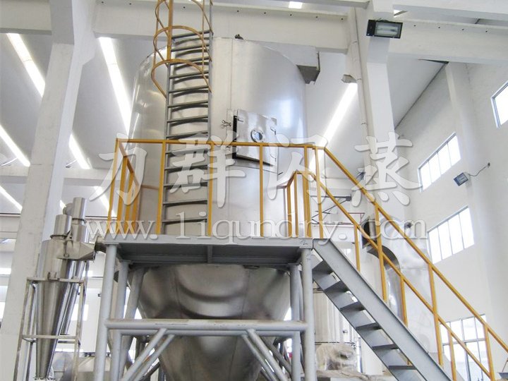 該機采用全封閉形式,所有部件均采用不鏽鋼製造,配有三級淨化裝置,過濾後的空氣達十萬級要求。筒體(tǐ)與頂部裝有冷壁裝置,使壁溫<80℃,幹燥塔內(nèi)裝(zhuāng)有氣(qì)刷掃塔裝置(zhì)。經該機幹燥後(hòu)的中(zhōng)藥浸膏粉,不會出現焦化變質現象,大(dà)大增加(jiā)了收粉率(95%以上),而且不會產生混藥現象和粘壁現象。