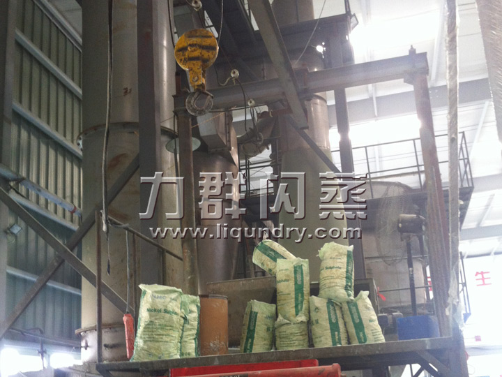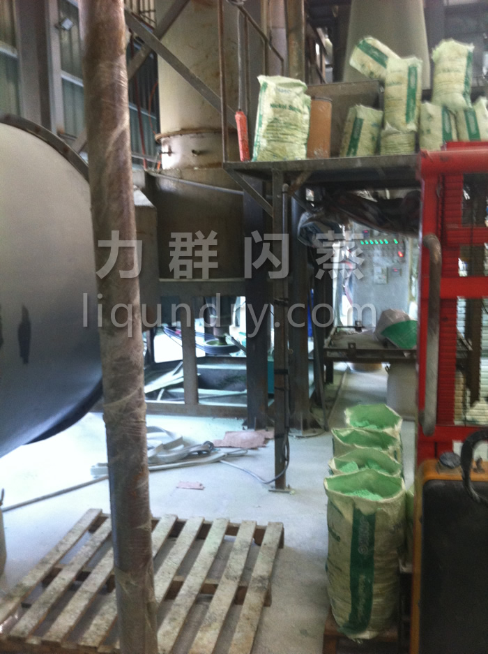 經換熱器加(jiā)熱(rè)後的潔淨空氣被鼓入進風口,以適宜的速度旋入幹燥室底部的環隙,然後按切線方向進入幹燥室,並呈螺旋狀上升:同時,物料則由可無級調速的加料(liào)器定量加入塔內。在幹燥塔內,物料(liào)與熱空氣進行充分、高效的質熱變換,被幹燥的(de)粉(fěn)狀物料隨同熱風一起(qǐ)輸送至分離器,其中成品(pǐn)收集包(bāo)裝,而尾氣則進一步經除塵裝置處理後排空。
